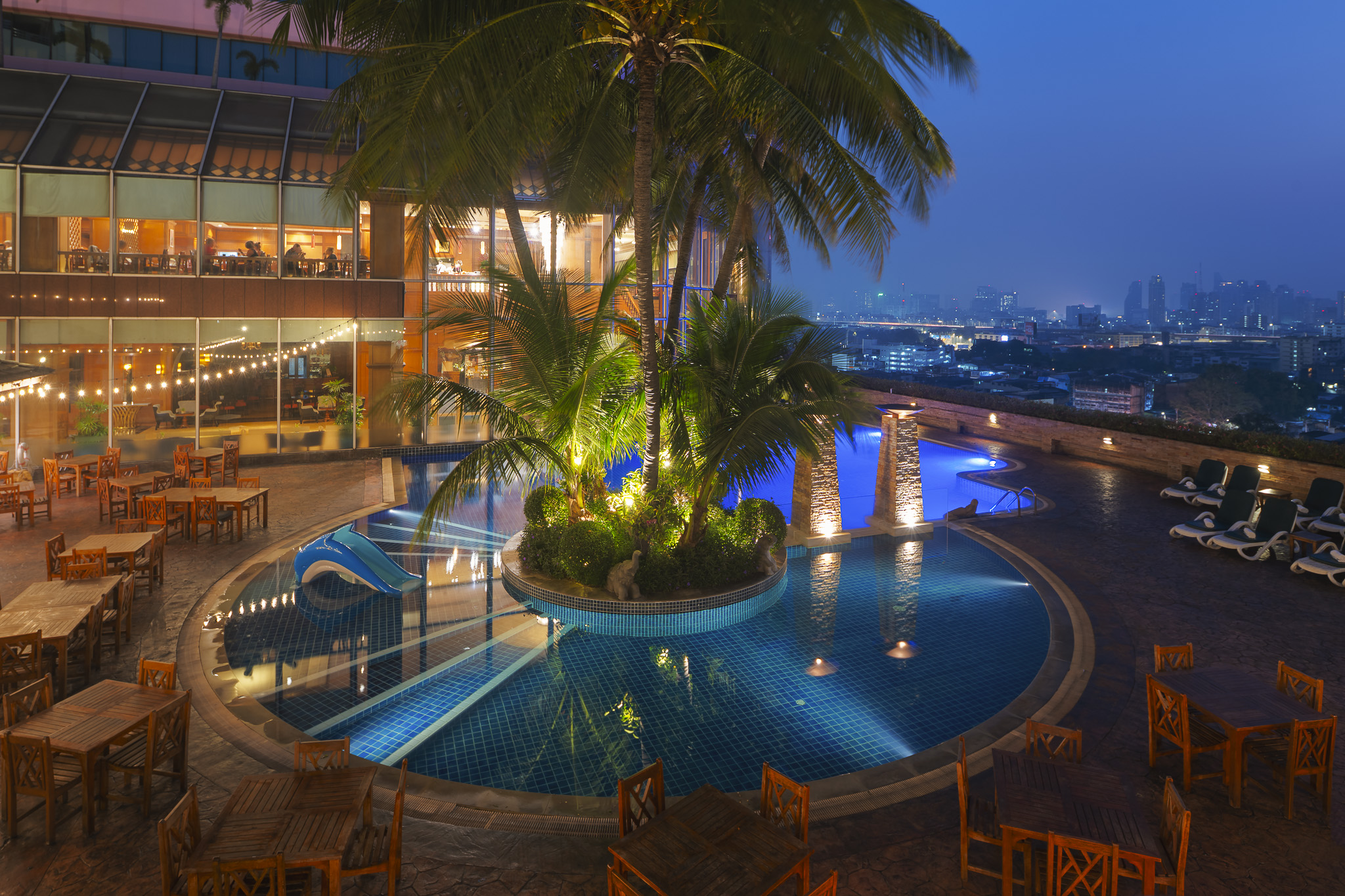 Swim, sunbathe, eat, drink, and soak in the old city scenery at Coconut Pool Bar. Let your holiday mood take over in an elevated space where the senses are treated to a feast of experiences. Sitting pretty on its 11th-floor rooftop stage, Coconut Pool Bar is a joy from dawn to dusk and deep into the evening. The curvaceous azure blue freshwater, swimming pool, is surrounded by lush tropical greenery, leaving clear views of Bangkok’s iconic historic skyline that sparkles under the sun during the day and dazzles with lights after dark.