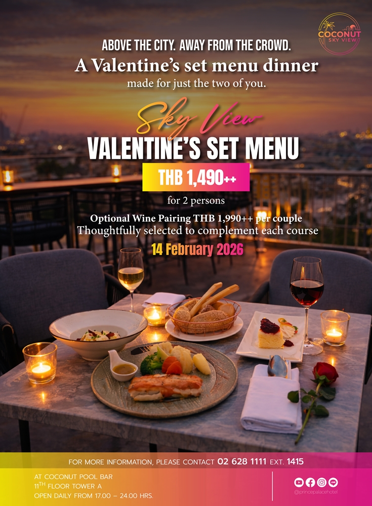 - Valentine’s Set Menu for 2 persons start from THB 1,490/Couple